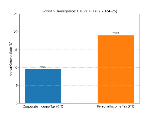 | Personal Income Tax (PIT) | ~12.90 (2024-25 gross) | ~30-31% | Highest growth (~17-21%); mainly salaried/middle-class via TDS |
