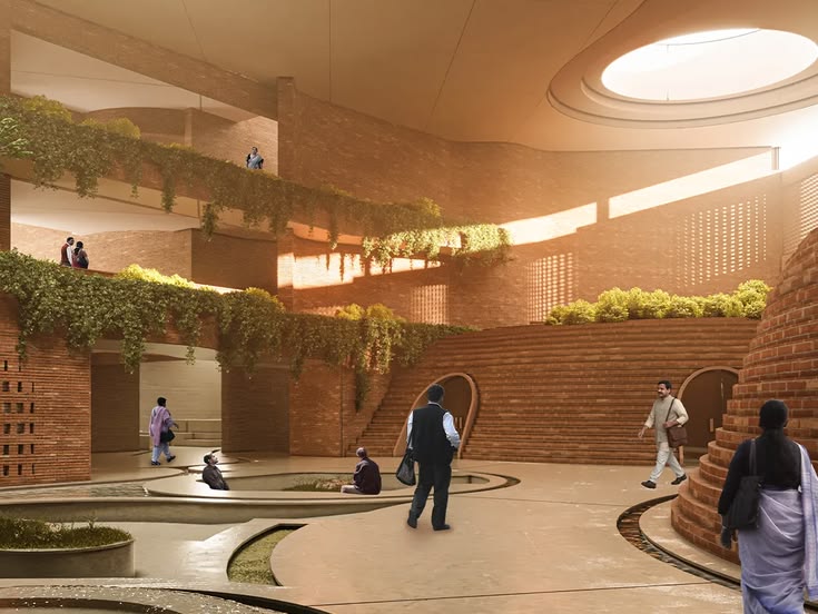 Brick lattices filter sunlight as if filtering history. Courtyards circulate air as if circulating moral renewal. Even the pedestrian paths—laid in stone and gravel to allow rainwater to percolate gently into the soil—seem to whisper that the earth, at least within these thirty-two acres, has finally been treated with care.